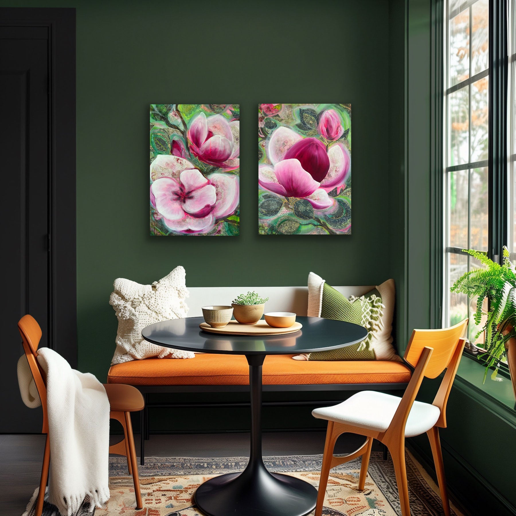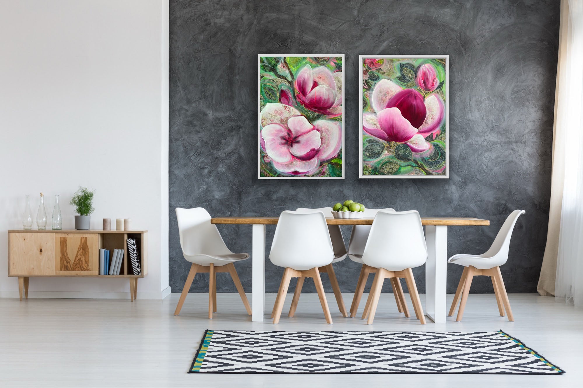 Printed on high-quality artist canvas, the artwork maintains the luxurious texture and serene atmosphere of the original. The magnolia — symbol of connection, renewal, and boundless love — becomes a timeless centerpiece that elevates any space with feminine grace and modern sophistication.